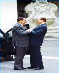 مبارك يجري مباحثات موسعة في روما مع بيرلسكوني وتشامبي